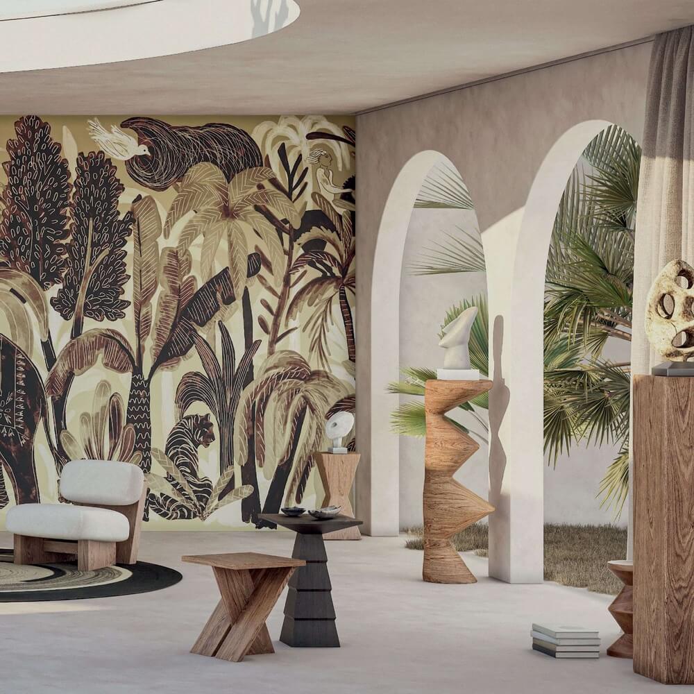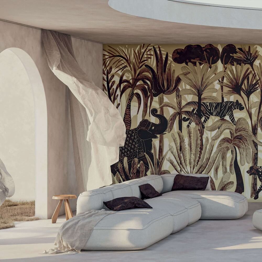 Ez a tapéta meleg, földszínekben játszik, amelyek békét és harmóniát árasztanak, tökéletesen illeszkedve bármely nappali vagy hálószoba enteriőrjéhez.